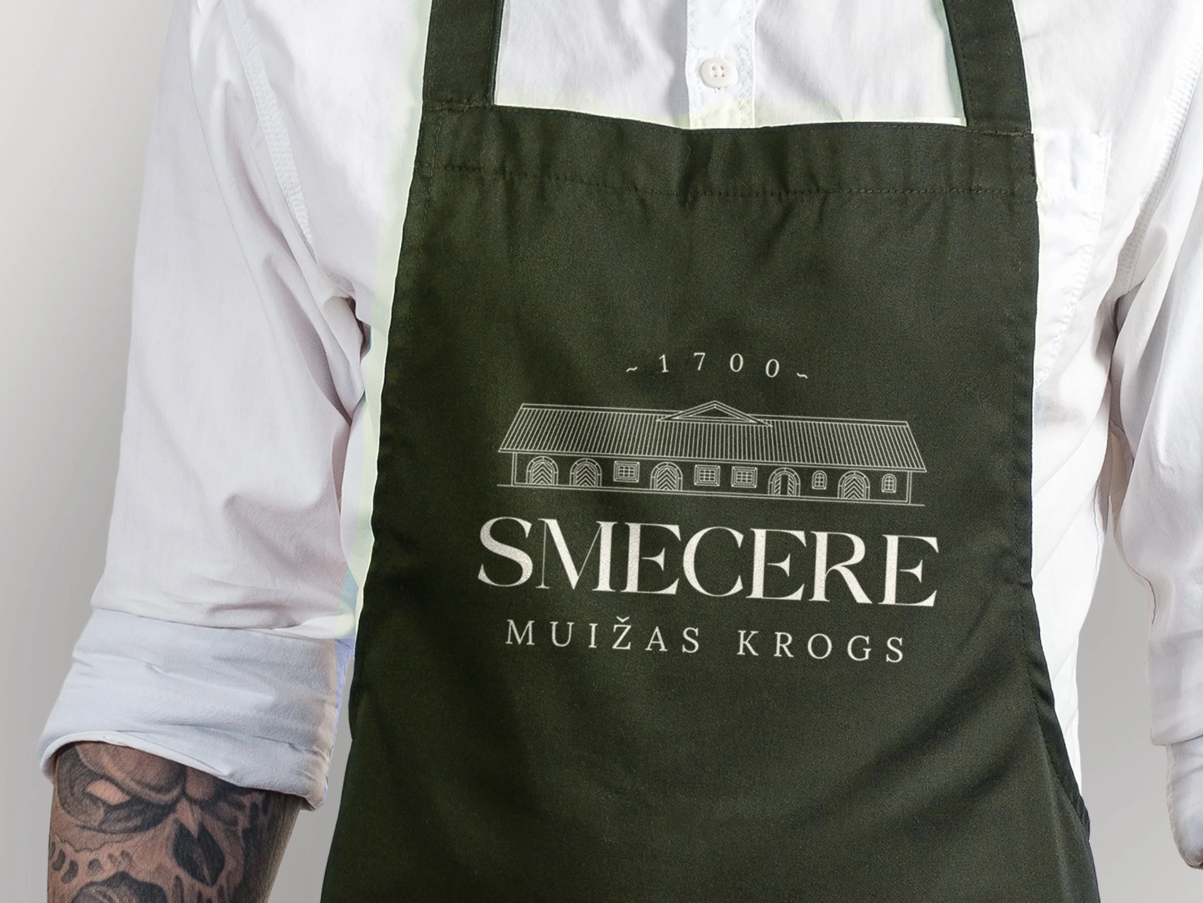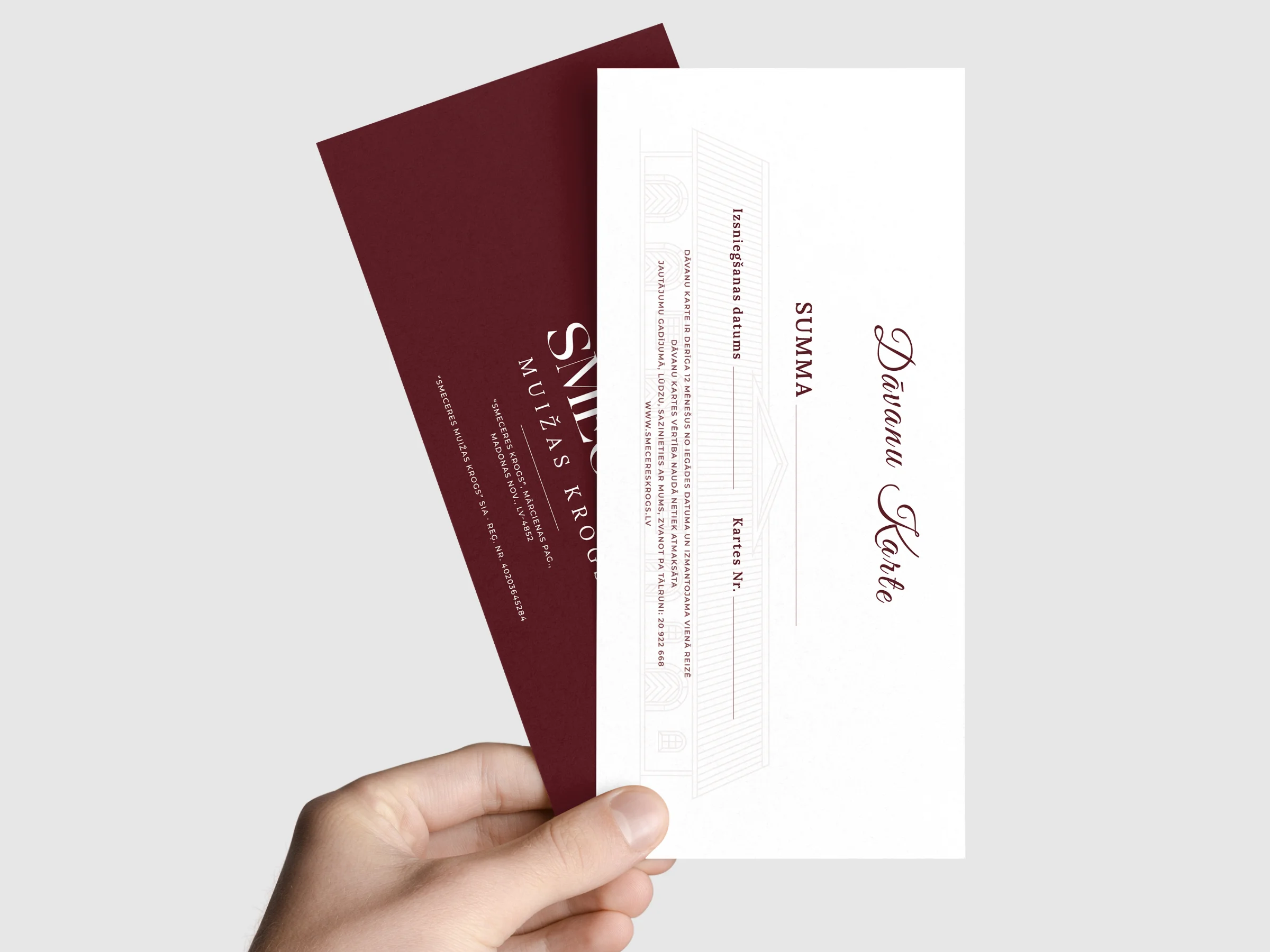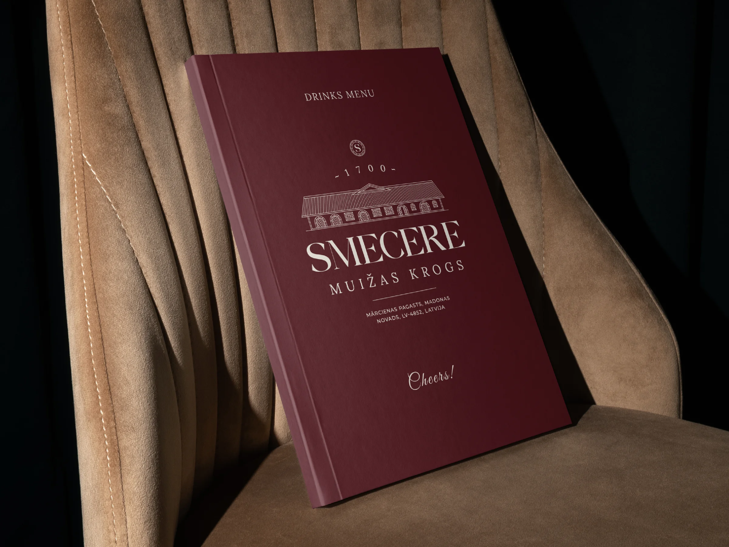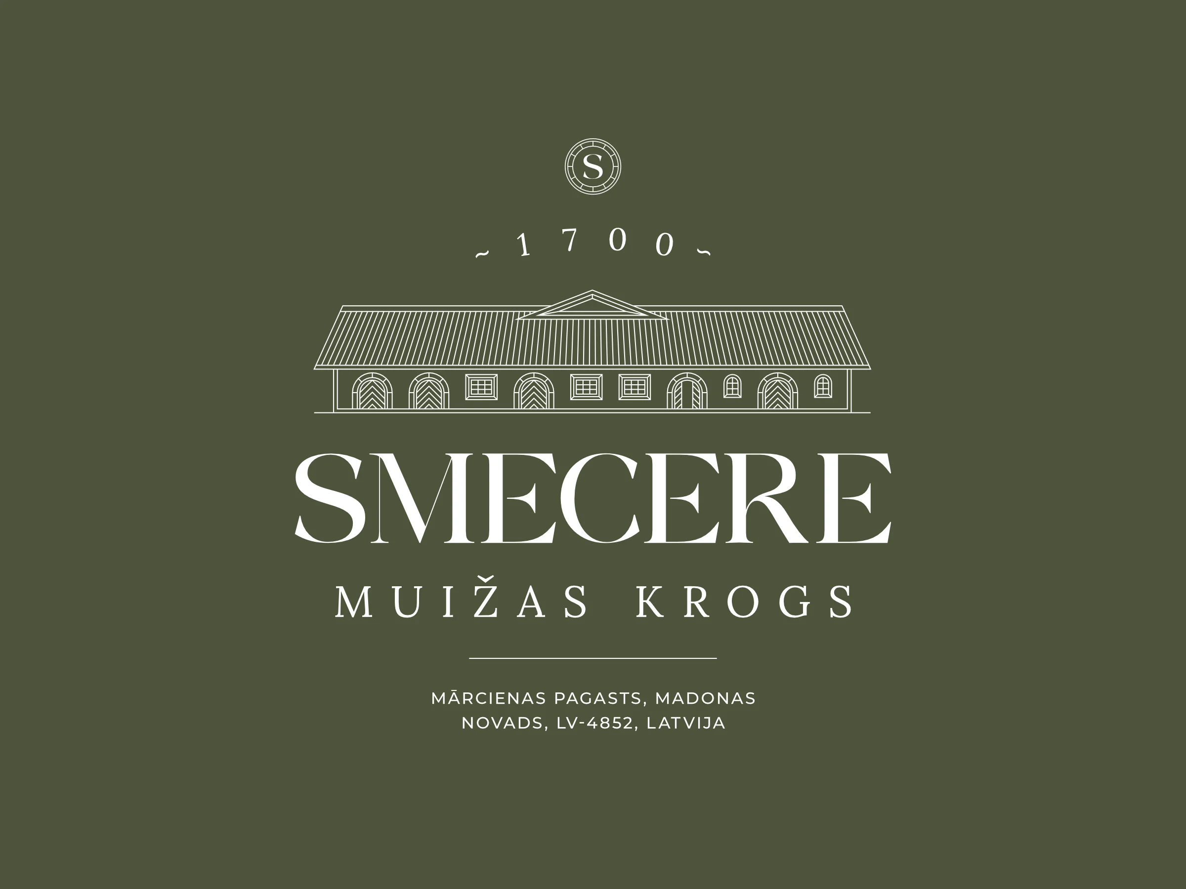 At its core is a simple but thoughtful logomark: a wine barrel viewed from above, referencing the manor’s past as a winery and tavern. Twelve lines form a clock-like structure, symbolising time and the building’s return to life after centuries. The shape also subtly forms the letter S, tying the symbol directly to the Smecere name.