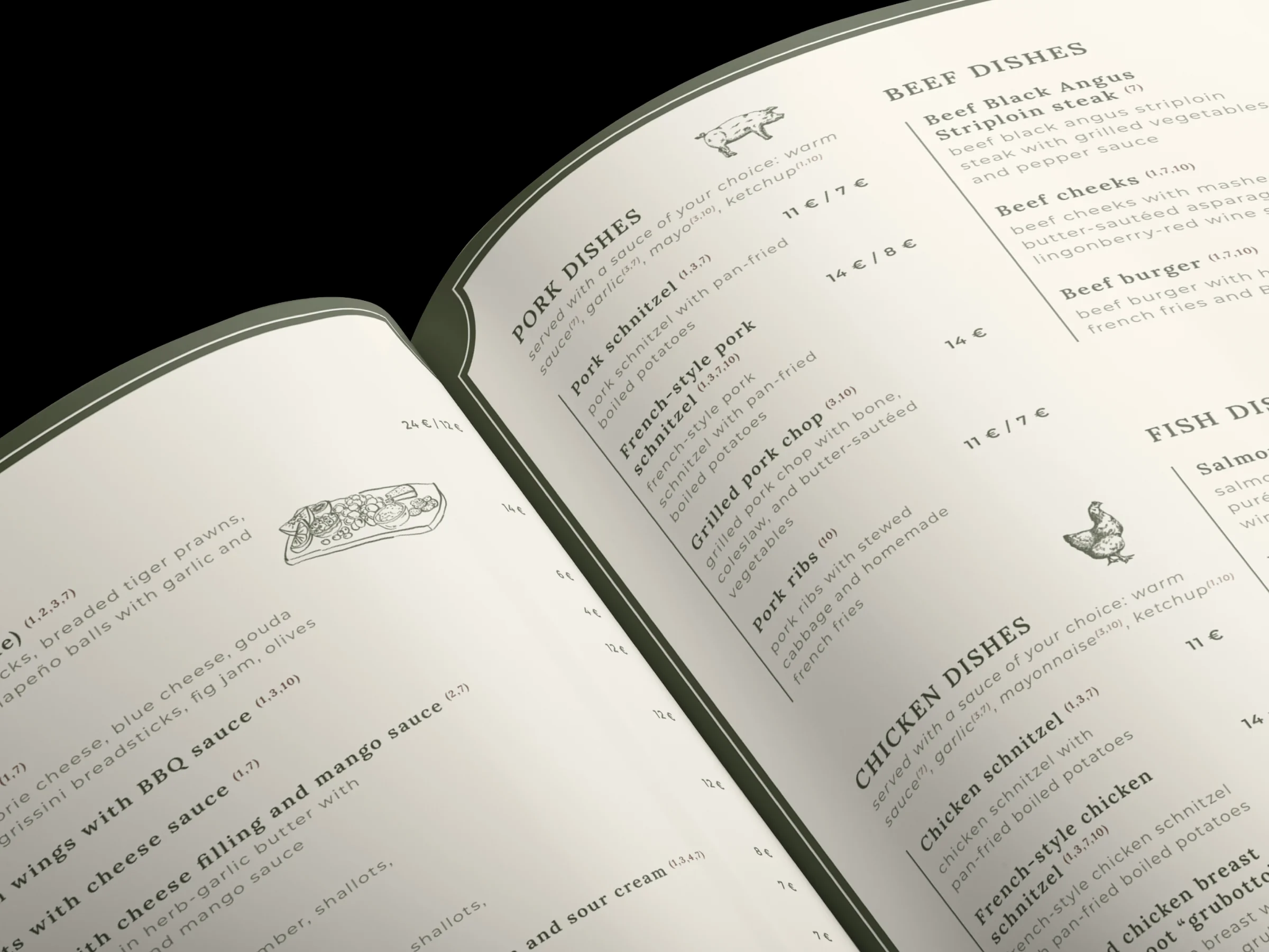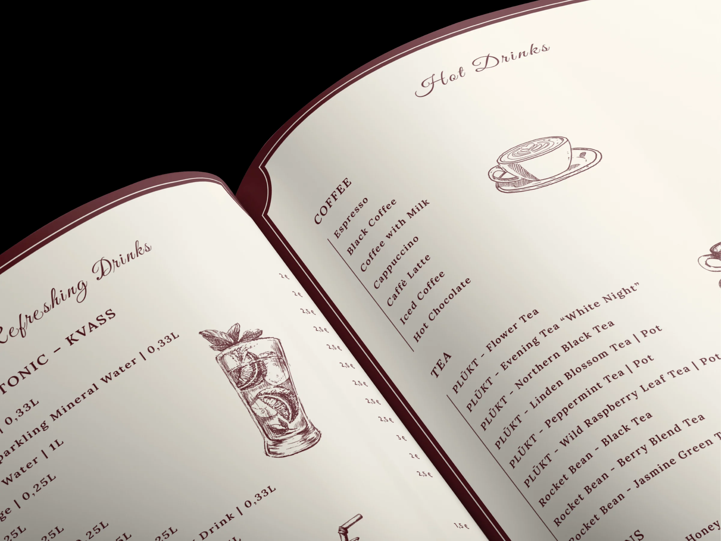 I studied existing Latvian menus and local norms in detail, as even small decisions — such as the placement of the euro symbol — affect clarity and familiarity. The goal was to make the menus feel immediately natural and easy to read for local guests.